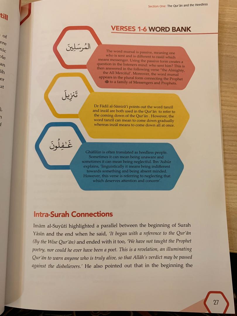 - Buku ini bukan hanya memaparkan tafsir-tafsir klasik kepada satu-satu ayat dalam bahasa yang lebih mudah difahami, bahkan disajikan bersama pengajaran dari aspek spiritual dan intelektual, keindahan sentuhan bahasa (word bank) serta diagram-infografik berwarna warni mengenai tema-tema menarik ditemui dari surah Yaasin.