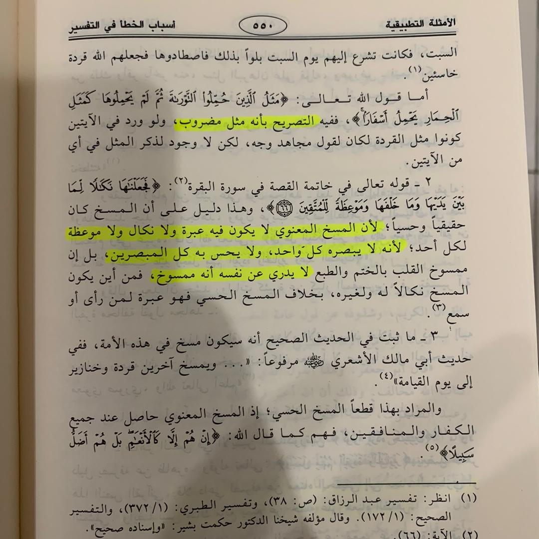 Mentafsirkan “menjadikan mereka kera” sebagai “menjadikan hati mereka seperti kera dan bukannya menjadikan tubuh badan mereka seperti kera” ialah contoh kesalahan dalam pentafsiran.