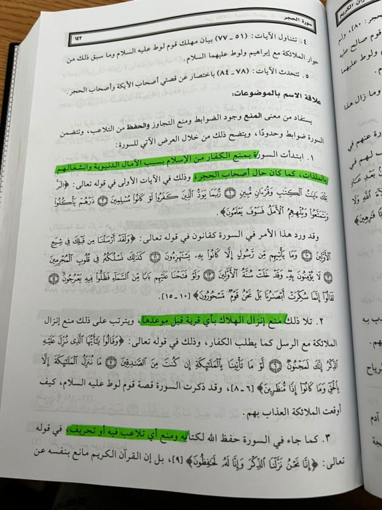 Kemudian surah al-Hijr (ayat 9) menegaskan pemeliharaan al-Quran hingga hari Kiamat dan TERHALANGNYA kalam Allah al-Quran ini dari terdedah pada perubahan dan penyelewengan manusia dan ahli agama yang mahu mengikuti hawa nafsu. Antara yang DIHALANG oleh Allah dari melakukan penyelewengan ke atas al-Quran ialah golongan “al-Muqtasimin” itu sendiri (ayat 90-92).