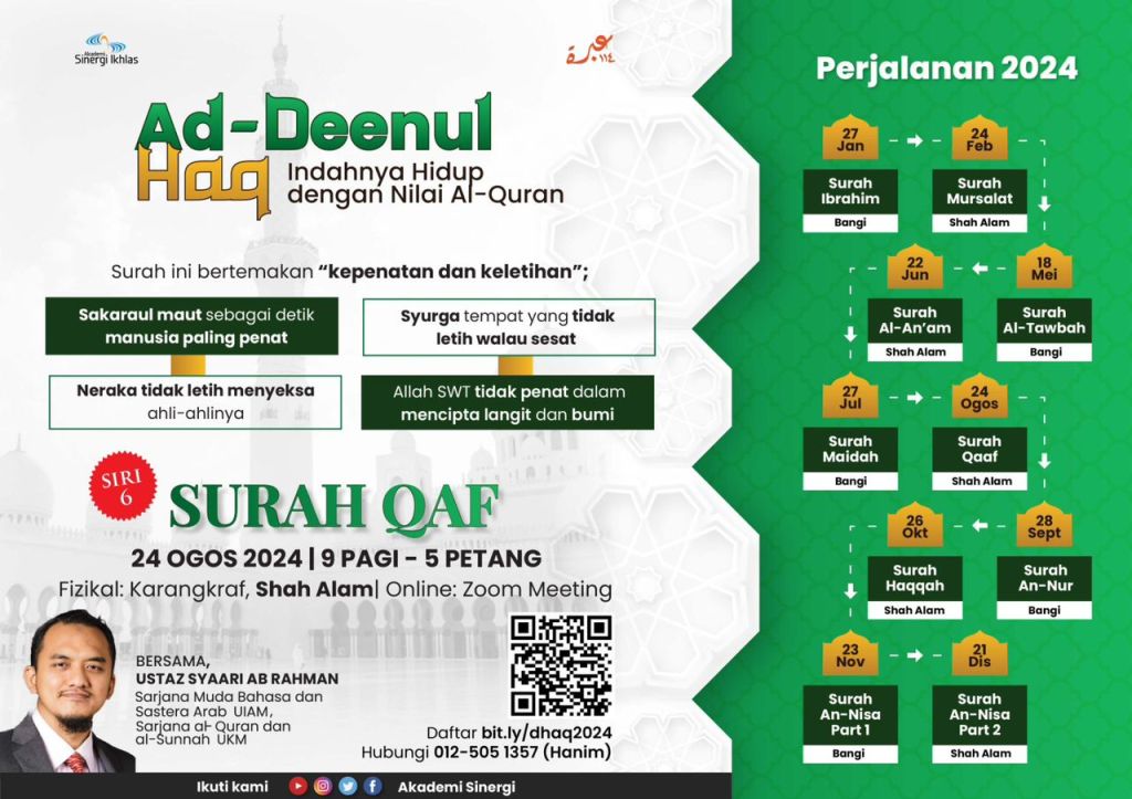 Antara yang bakal dikongsikan ialah tiga ayat yang menunjukkan suasana sirah di sebalik penurunan surah ini, hikmah susunan surah dalam mushaf, hikmah awalan dan akhiran, segmentasi surah sebagai sebuah perjalanan yang tersusun, kemudian apa keunikan diumumkan surah pada setiap segmen berkenaan.