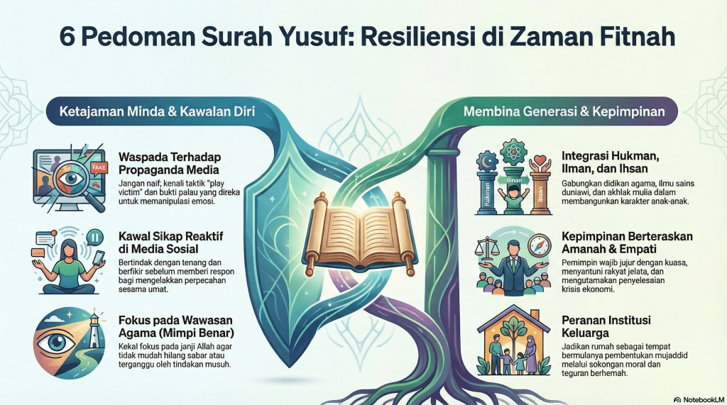 4. Jangan naif membaca berita. Jangan mudah beremosi dan ditipu dengan konten propaganda musuh yang masuk ke dalam telefon kita. Air boleh dilihat api, api boleh dilihat air. Dengan air mata yang direka, “plavictim” dan mereka-reka bukti palsu ialah formula ampuh mereka. Bacaan pada isu mesti secerdas Nabi Yaaqub semasa membaca wajah anak-anaknya yang sedang berdusta (12:18)